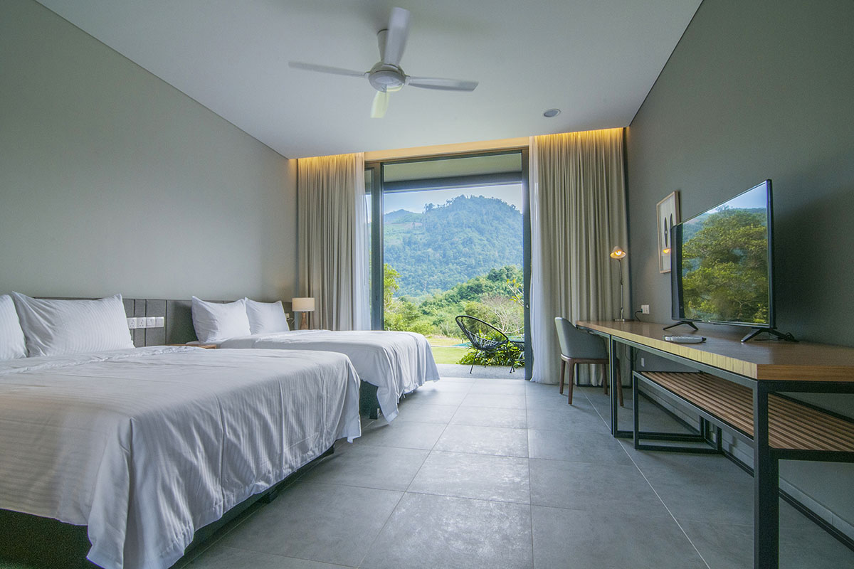 On the vast resort grounds, guests have access to a wide range of recreational activities and eco-pursuits, including a cycling trail for kids with free bicycles, petting zoo to feed farm animals, walking trail, and collecting a harvest from the paddy field, herb garden and orchard. Other facilities include a meeting rooms, kids indoor playroom, karaoke lounge, restaurant, cafe and car park.