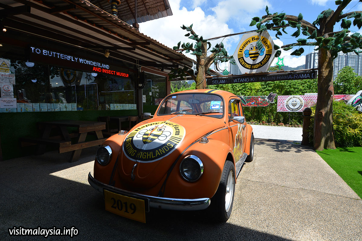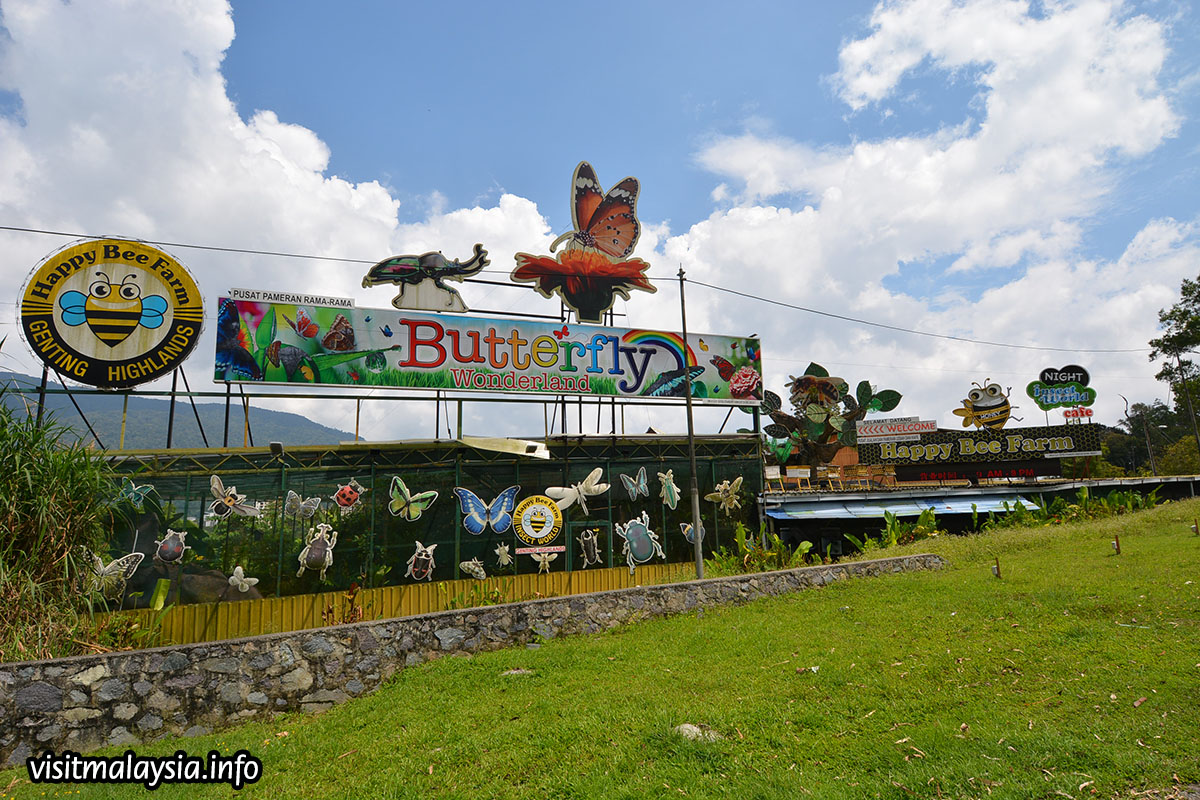 Happy Bee Farm & Insect World is an apiary and entomological gallery located along the main road a short distance before Gohtong Jaya. On the premises, visitors may observe and learn about local honey production and even sample some of this sweet delight. Another recent attraction is the farm's 'Butterfly Wonderland', a large aviary stocked with local species of butterflies along with tame birds.