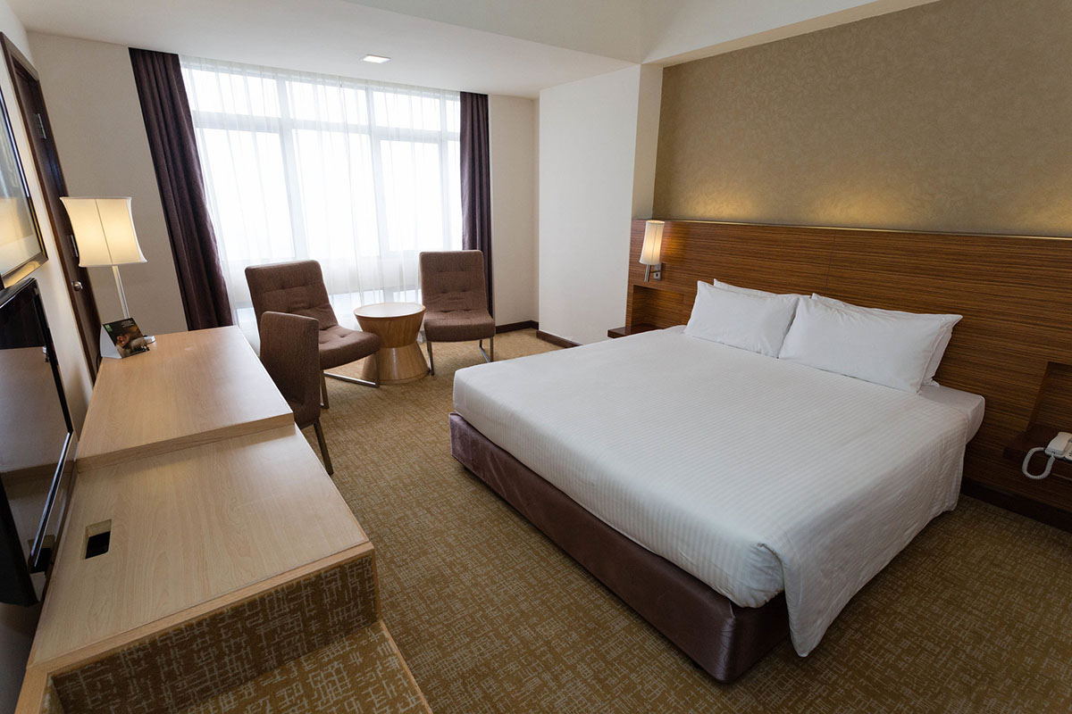 The rooms combine modern amenities with a contemporary boutique setting. For breakfast and other meals, the Resort Cafe and Restoran Kampong are two adjoining buffet restaurants at first floor that serve practically as a single establishment; guests can eat from both venues simultaneously.